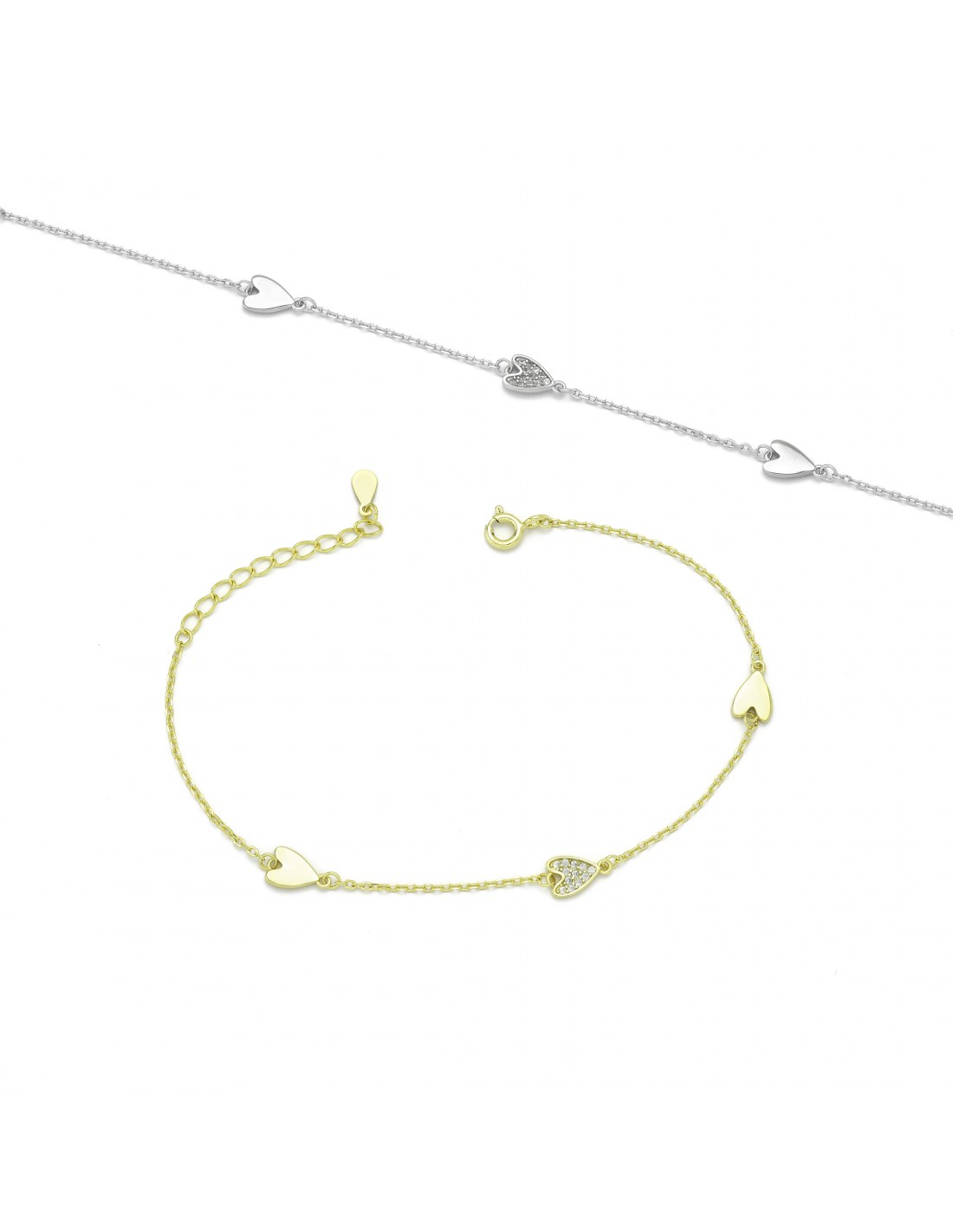 Βραχιόλι 3 καρδιές σε ασήμι 925 με πέτρες ζιργκόν στην μεσαία