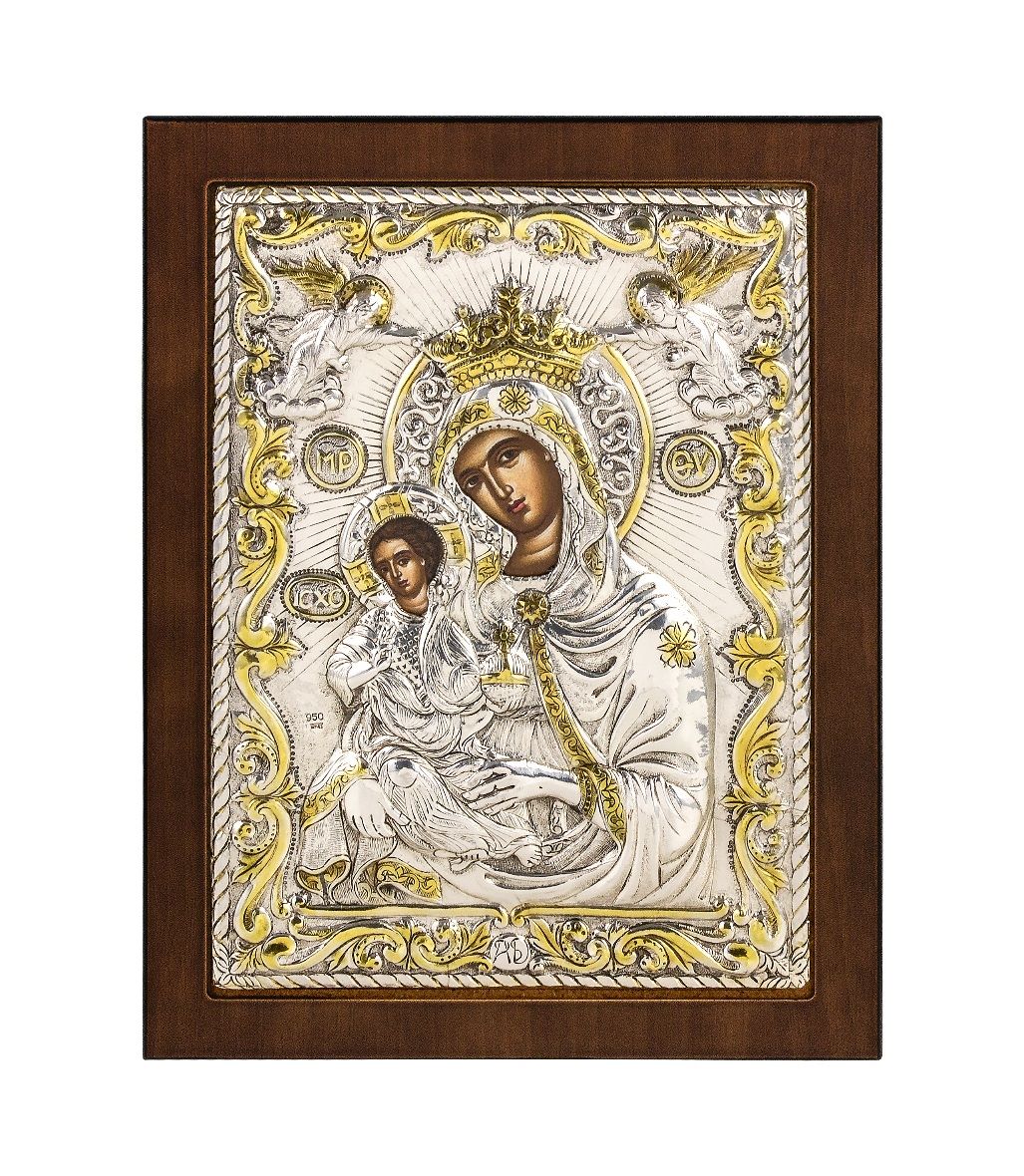 Εικόνα ασημένια με επιχρυσώματα “Παναγία Γλυκασμός των Αγγέλων “