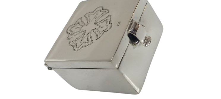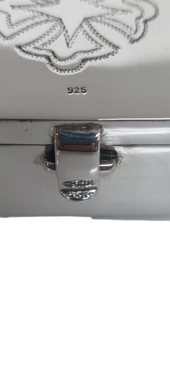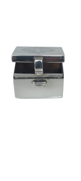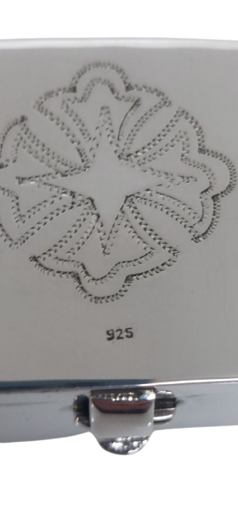 Λειψανοθήκη μινιατούρα κουτάκι αργυρό 925 με εγχάρακτο σταυρό και κούμπωμα ασφαλείας.