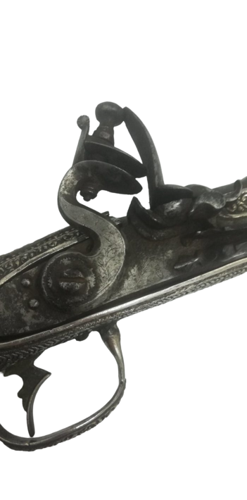 Πιστόλα Ρουμελιώτη οπλαρχηγού 1821, πλήρως ανακατασκευασμένη από άργυρο 925 στο εργαστήριο μας. Εξ ‘ολοκλήρου χειροποίητη κατασκευή, με αντικατάσταση ή επιδιόρθωση μερών του καταπληκτικού εθνικού μας κειμήλιου.